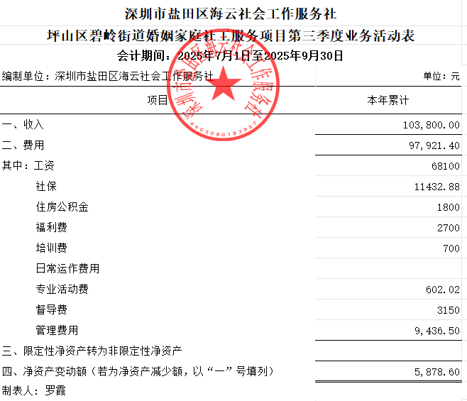 坪山区碧岭街道婚姻家庭社工服务项目第三季度业务活动表
