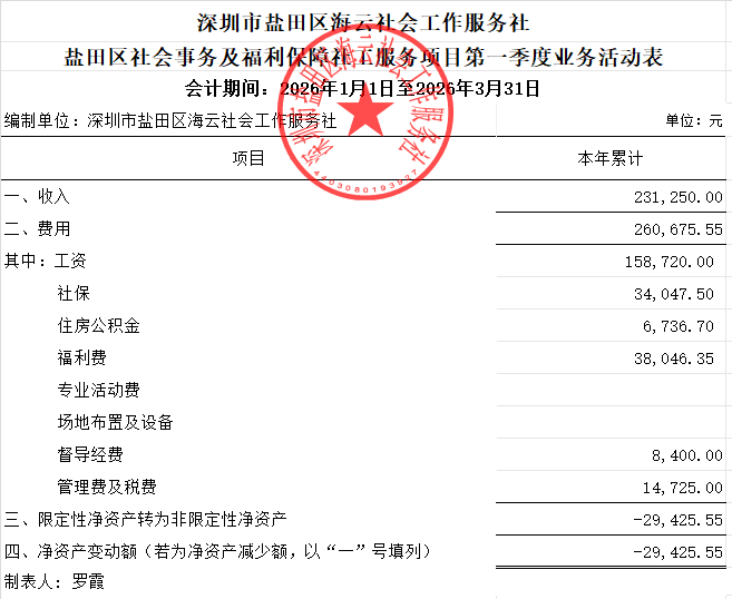 盐田区社会事务及福利保障社工服务项目第一季度业务活动表