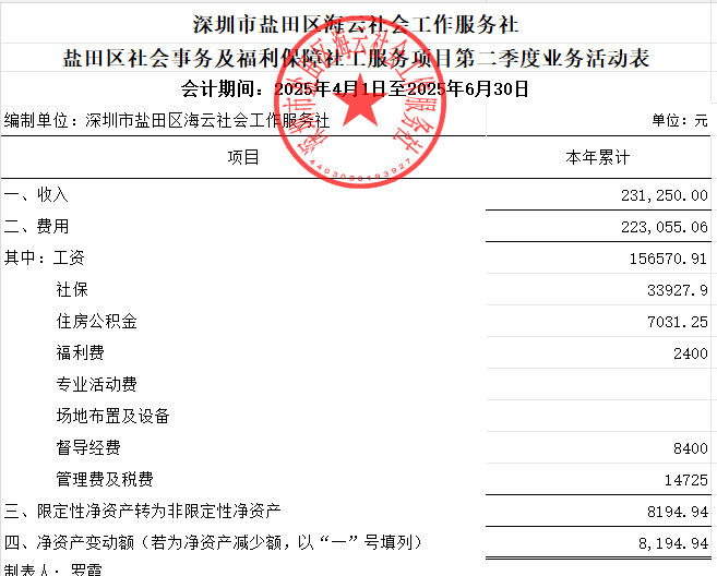 盐田区社会事务及福利保障社工服务项目第二季度业务活动表