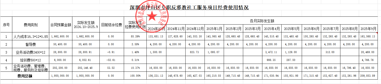 深圳市坪山区专职反邪教社工服务项目经费使用情况