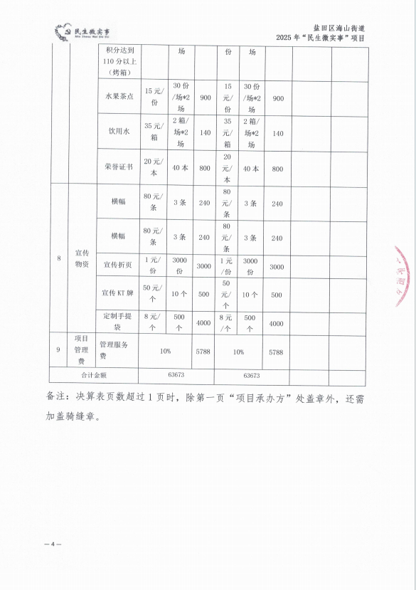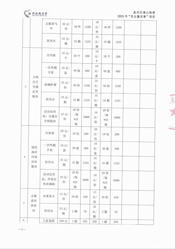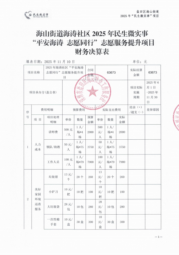 海山街道海涛社区2025年民生微实事 “平安海涛志愿同行”志愿服务提升项目财务决算表