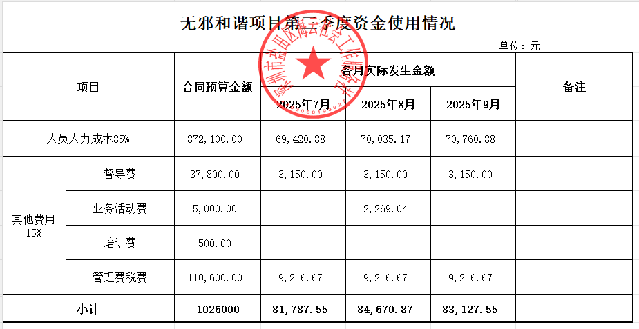 无邪和谐项目第三季度资金使用情况