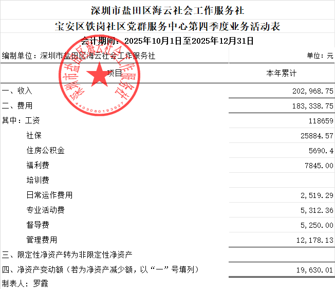 宝安区铁岗社区党群服务中心第四季度业务活动表