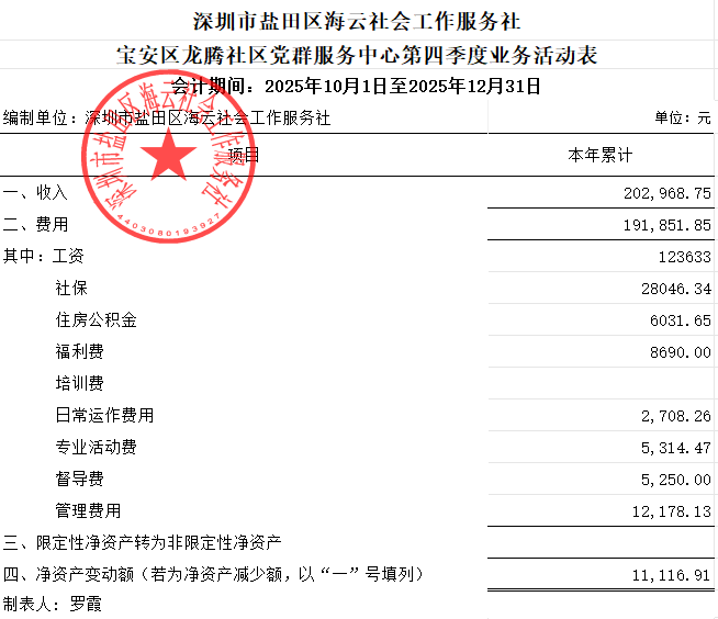 宝安区龙腾社区党群服务中心第四季度业务活动表