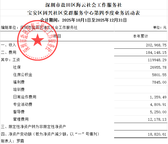 宝安区固兴社区党群服务中心第四季度业务活动表
