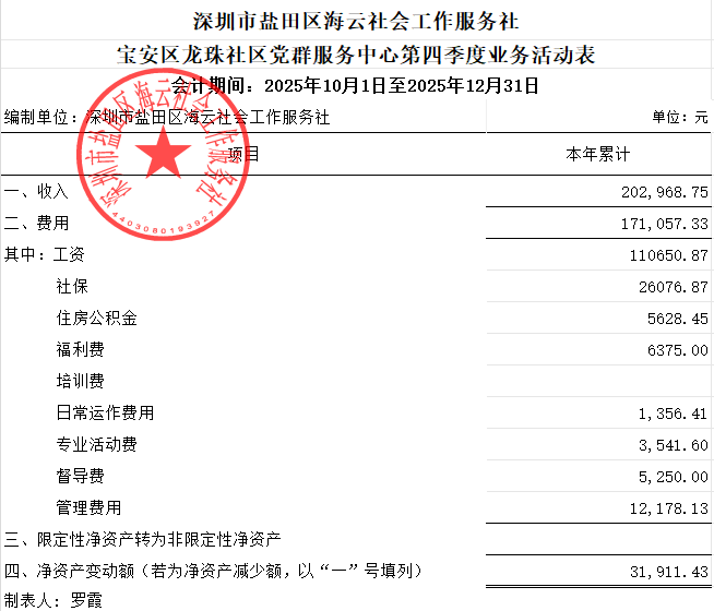 宝安区龙珠社区党群服务中心第四季度业务活动表