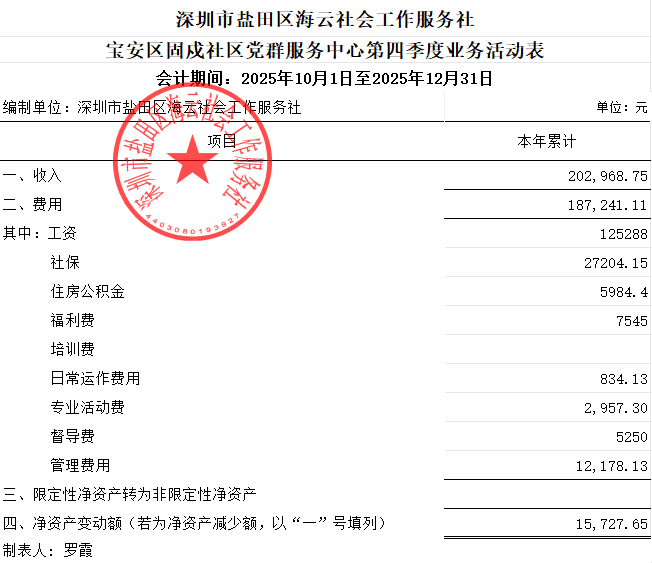 宝安区固戍社区党群服务中心第四季度业务活动表.